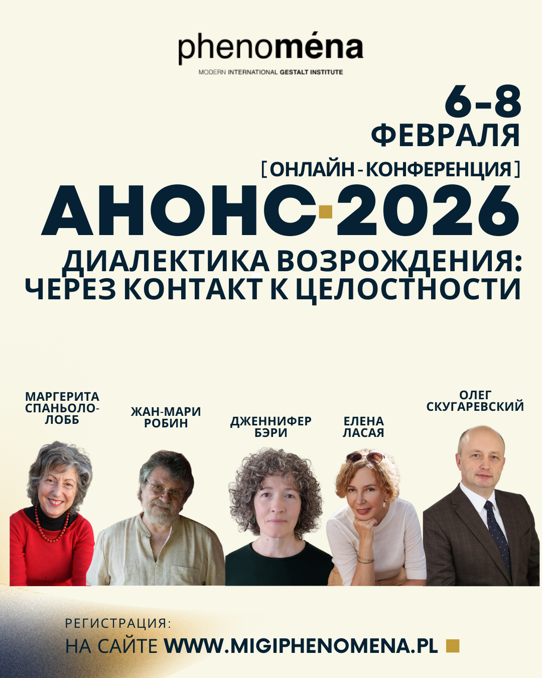 На конференции вас ждет встреча с ведущими фигурами гештальт-сообщества (Жан-Мари Робин, Маргерита Спаньоло Лобб), практический мастер-класс по методу Психотерапии Соматического Развития (Дженнифер Бэри, США), лекция и дискуссия от доктора медицинских наук, профессора Скугаревского Олега Алексеевича на тему сочетания фармакотерапии и гештальт-терапии, практические воркшопы, направленные на интеграцию эстетико-телесного опыта, а также, разнообразные мастерские от практикующих психологов, супервизоров и тренеров. Но это еще не все и совсем скоро мы продолжим сообщать вам новости...